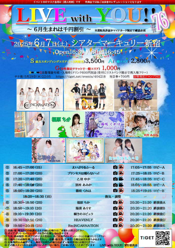 ライブ SCHEDULE 2025/06/07(土) シアターマーキュリー新宿 【LIVE with YOU!!】#76 📍 シアターマーキュリー新宿 🎤16:45-17:00 📢17:05-17:55(ロビーA) 🎫:tiget.net/events/404218 URLをコピーする 報告する