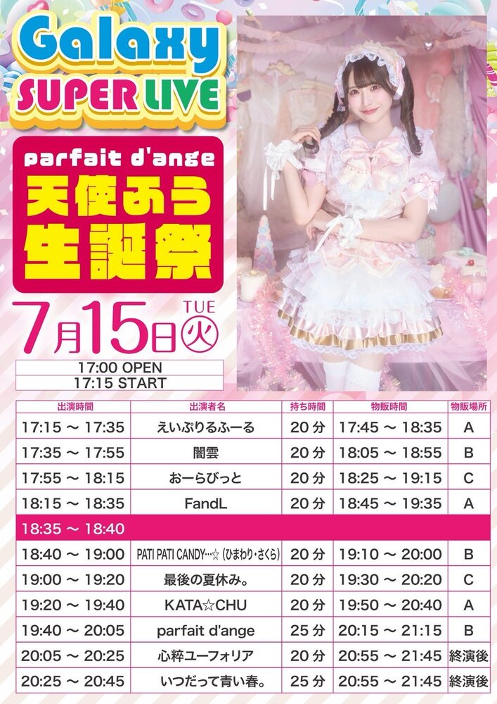 ライブ SCHEDULE 2025/07/15(火) 秋葉原Galaxy 🌸7/15(火)ライブ情報🌸 「Galaxy SUPER LIVE」parfait d'ange 天使ふう生誕祭 📍 秋葉原Galaxy 🎤17:15-17:35 📢17:45-18:35(A) 🎫 tiget.net/events/414252 えいぷる入場1Pt🌷 #えいぷる #えいぷるLIVE URLをコピーする 報告する