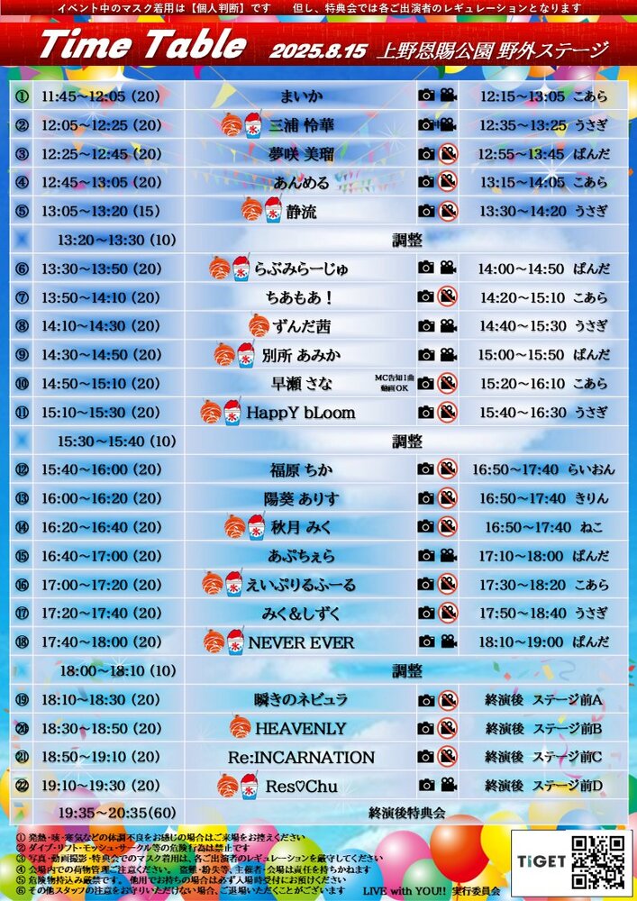 ライブ SCHEDULE 2025/08/15(金) 上野水上音楽堂 【LIVE with YOU!!】~ うえの水撃ふぇす ~♪ 📍 上野恩賜公園 野外ステージ 🎤17:00-17:20 📢17:30-18:20 5日(火)22:00~ 🎫tiget.net/events/419565 えいぷる入場1Pt🌷 #えいぷる #えいぷるLIVE URLをコピーする 報告する